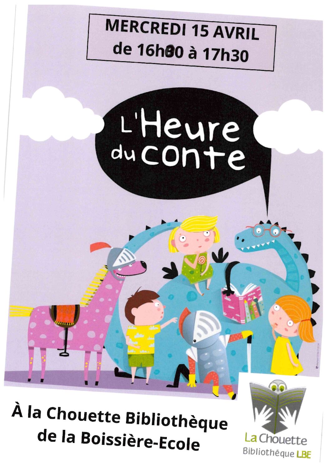 - Ce mercredi de 16h à 17h30 c’est la chouette bibliothèque qui nous propose son heure du conte,